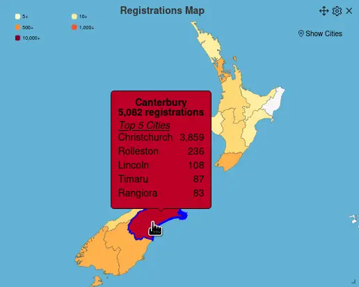 Registrations map dashboard widget - visually see where people are from with a new interactive world map showing breakdown by city, region or country.